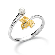 925 Sterling Silver Maple Leaf Pearl Ring, Pearl And Maple Leaf Ring, Leaf Ring, Maple Leaf Ring, Silver Leaf Ring, Pearl Ring, Adjustable Ring