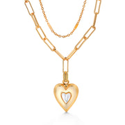 14k Gold Plated Brass Layer Heart Necklace, Stackable Gold Necklace, Heart Necklace, Stackable layer gold chain necklace, Heart Pendant, Layer Necklace, Paper Clip Layer Necklace