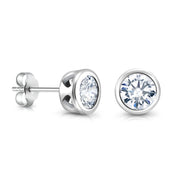 925 Sterling Silver Cubic Zirconia Bezel-Set Earrings, CZ Silver Bezel Studs Earrings, Bezel Earrings For Gift, Hypoallergenic Bezel Studs, Classic Bezel Stud Earrings