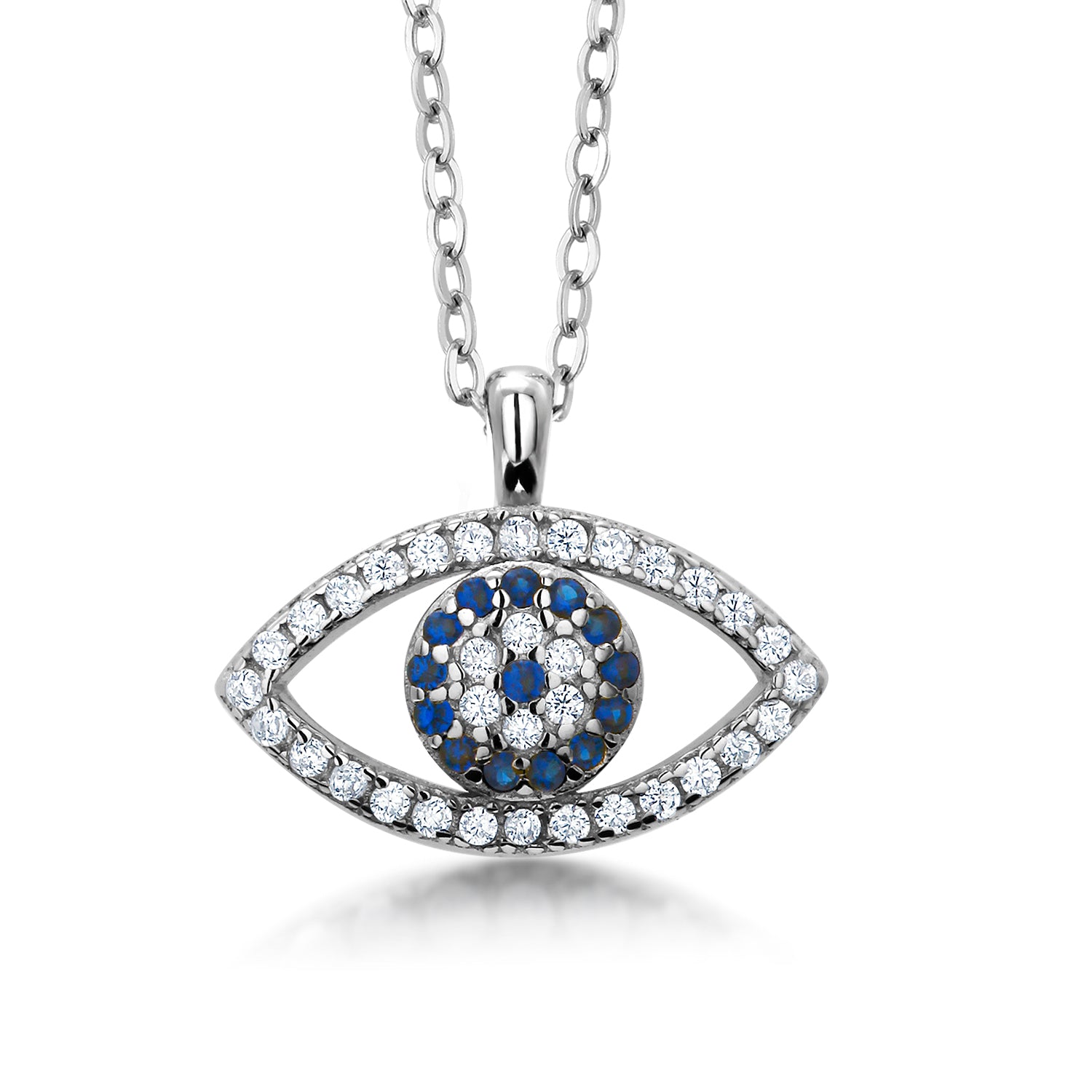 925 Sterling Silver Devil Eye Necklace-16"+2" Chain, Devil Eye Cubic Zirconia Necklace, Devil Eye Necklace, Devil Eye Charm Necklace