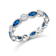 925 Sterling Silver White And Blue Simulated Sapphire Eternity Ring, Eternity Ring, Simulated Sapphire Eternity Ring, Silver Ring