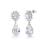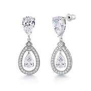 Wedding Teardrop Dangle Earrings, Finest Quality Pear and Round Cut AAA Cubic Zirconia Dangle Earrings