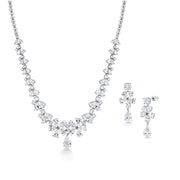 Wedding Teardrop CZ Flower Design Necklace Set- 17 Inch Length, Teardrop Earring And Necklace Set, Brass flower Shape Bridal CZ Jewelry Set