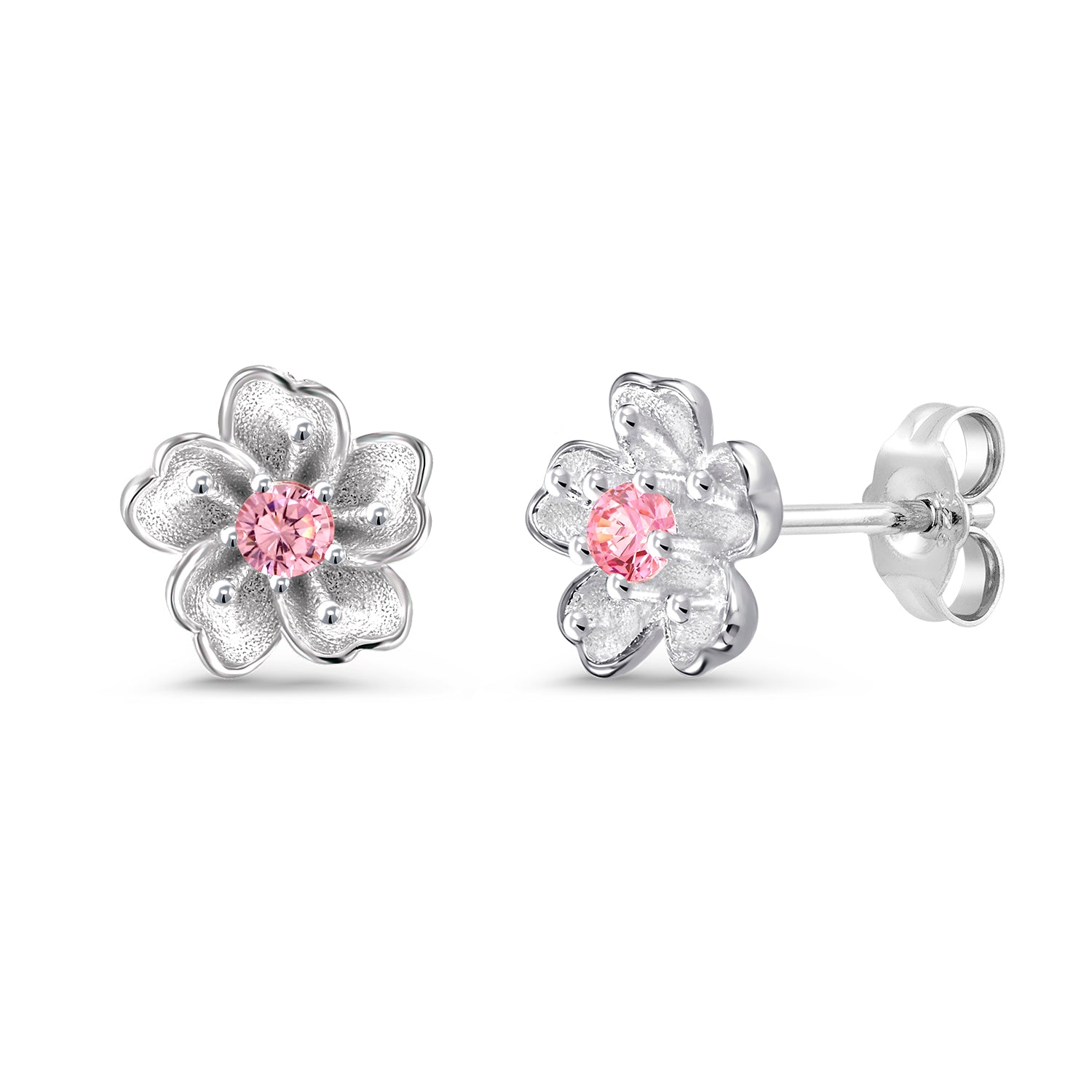 925 Sterling Silver Cherry Blossoms Stud Earrings, Blossoms Earrings, Pink Cz Flower Stud Earrings, Blossoms Flower Charm Earrings, Hypoallergenic Flower Studs, Floral Jewelry