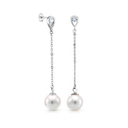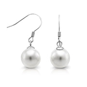 925 Sterling Silver Round Pearl Dangle Earrings, Dangle Pearl Earrings, Drop Pearl Earrings, Classic Pearl Dangle Earrings, Hypoallergenic Dangle Earrings