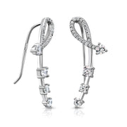 925 Sterling Silver CZ Climber Hook Earrings For Women, CZ Hook Earrings, Classic Climber Earrings