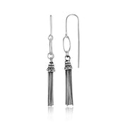 925 Sterling Silver Tassel Earrings, Multi-Strand Snake-Cut Italian Chain Tassel Earrings, Fishhook Tassel Earrings, Oxidize Tassel Earrings