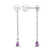 925 Silver Pearl Dangle Earrings, Silver Pearl Dangle Earrings, White Pearl Earrings, Pearl And Amethyst Drop Earrings, 2 in 1 Drop Earrings
