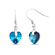 925 Sterling Sliver Blue Crystal Heart Earrings, Bermuda Blue Crystal Earrings, Daily wear Earrings
