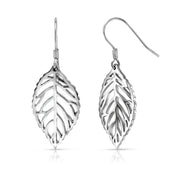 925 Sterling Silver Leaf Dangle Earrings for Women, Lightweight Hypoallergenic Filigree Drop Earrings, Nature Inspired Bohemian Jewelry Gift