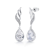 Tear Drop Cubic Zirconia Rhodium Plated Silver Tone Dangle Earrings, Teardrop Cz Dangle Earrings, Fish Hook Dangle Earrings, Brass Dangle Earrings