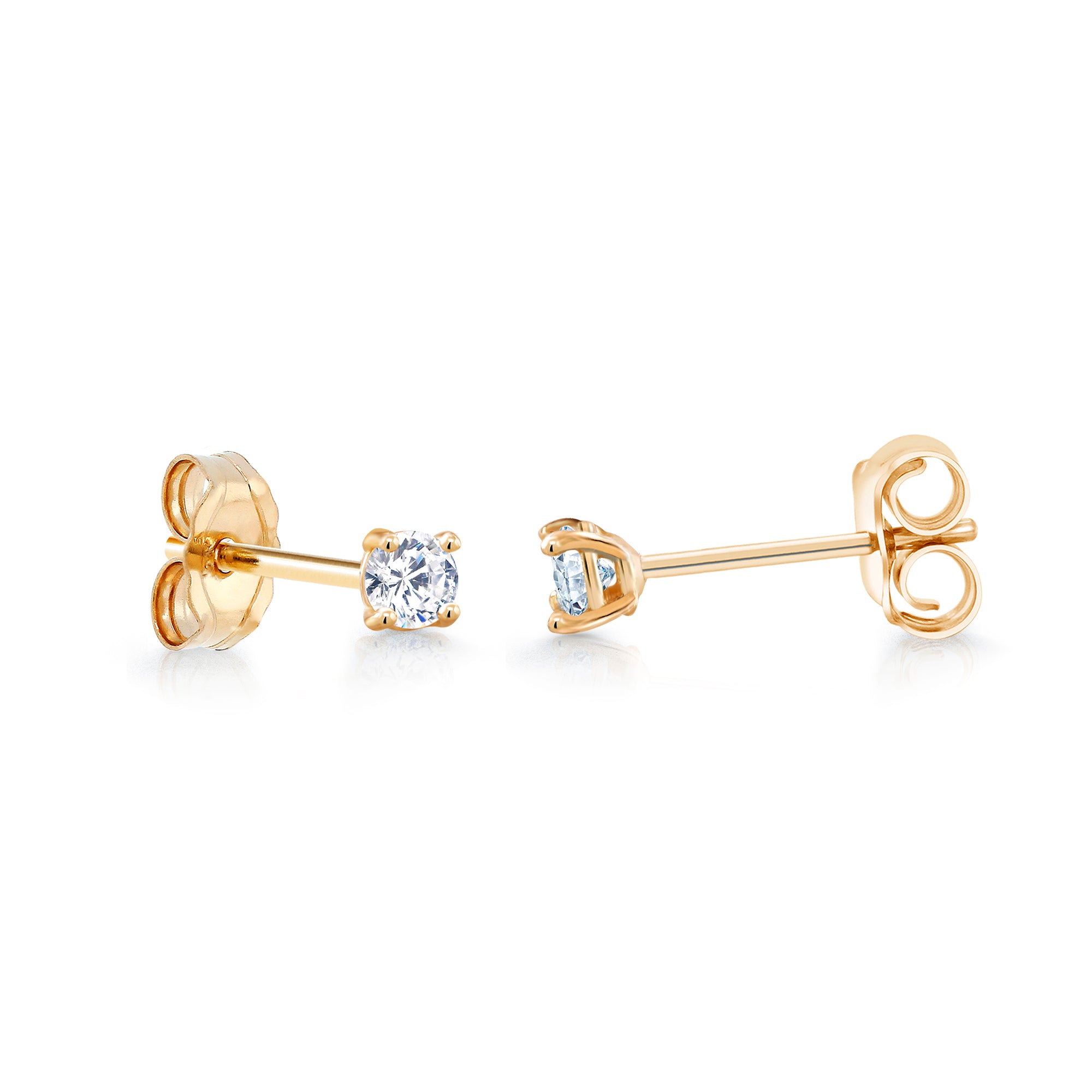 Solid 14K Yellow Gold Cubic Zirconia 4mm Bezel-Set Earrings, Bezel Studs Earrings, Bezel Studs Earrings, Round CZ Bezel Studs Earrings, Bezel Earrings For Gift, Gold Bezel Studs Earrings