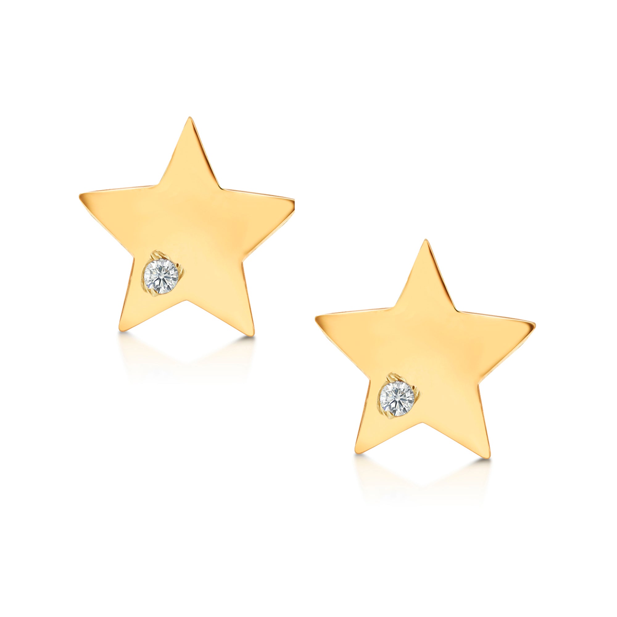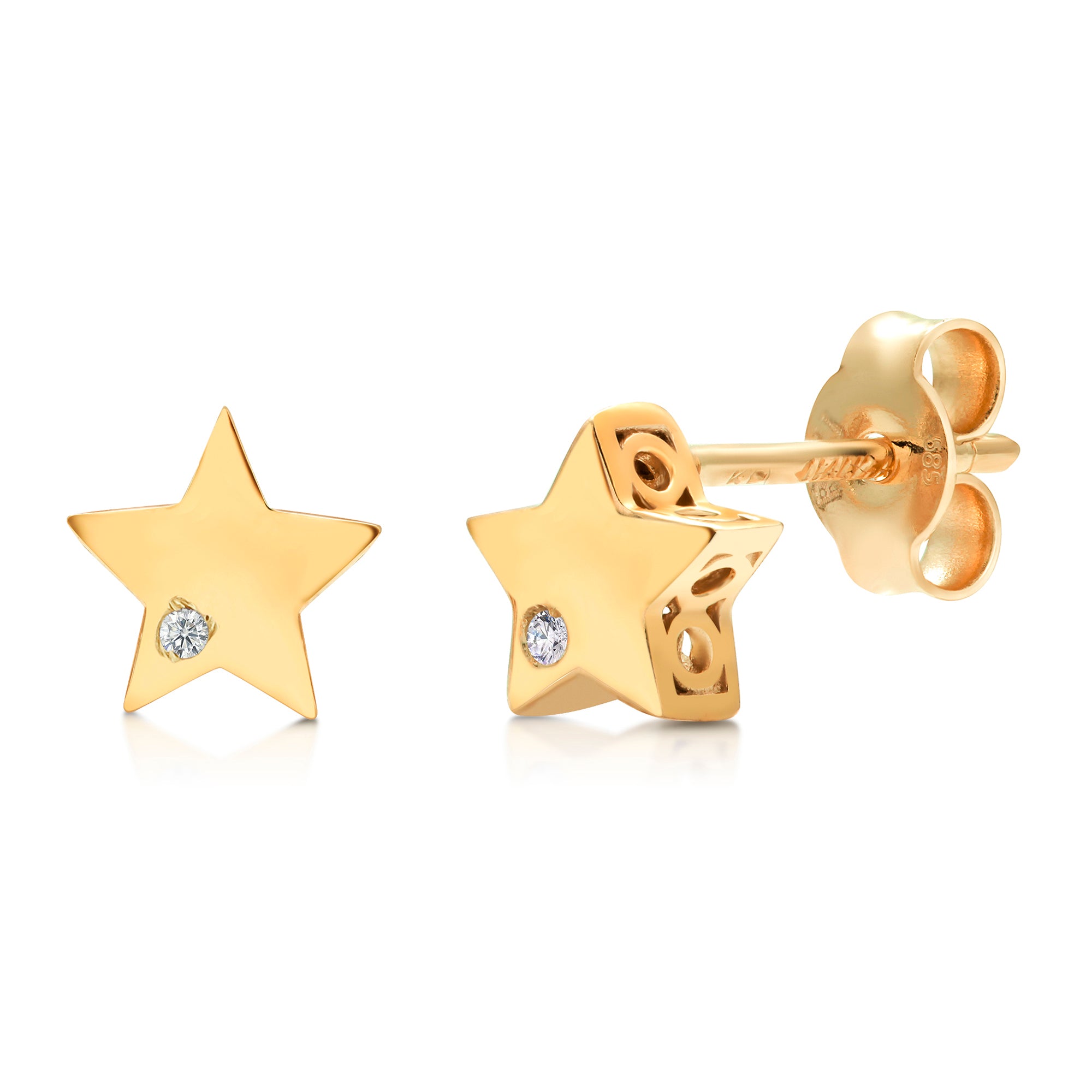 14K Solid Yellow Gold Daimond Star Studs, Star Studs, Diamond Studs, Dainty Star Studs, Tiny Star Studs, Solid Gold Studs