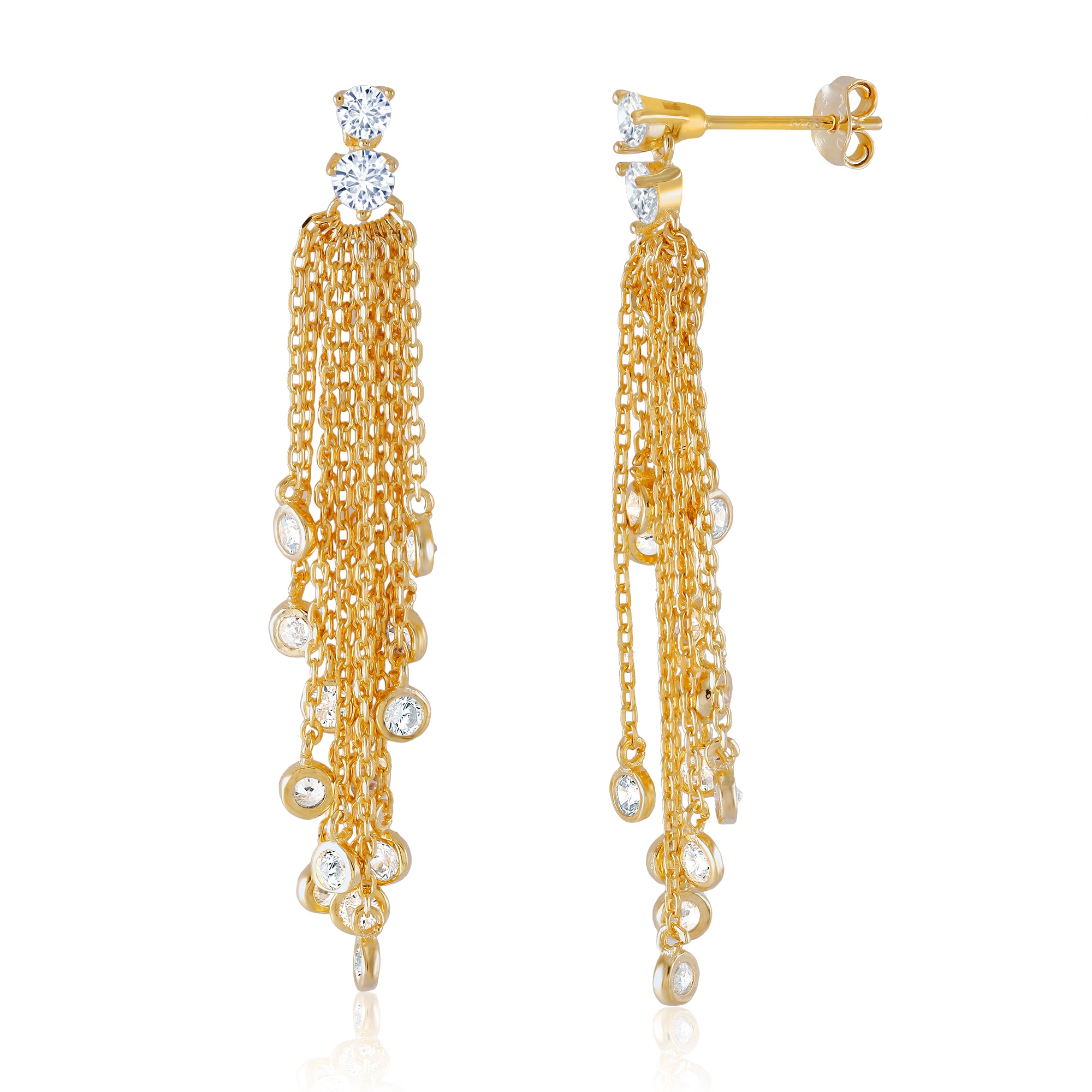 925 Sterling Silver 18k Gold Plated Tassel Earrings, Multi-Strand Cable Chain Tassel Earrings, Yellow Gold Plated Tassel Earrings, Push Back Tassel Earrings