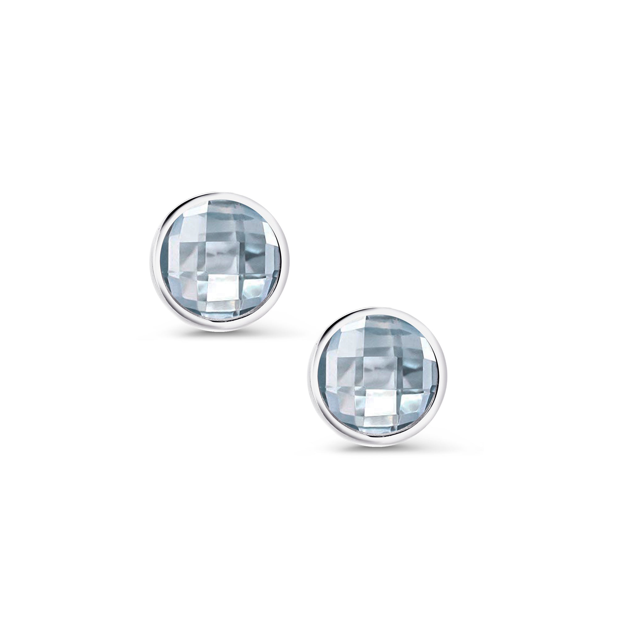 925 Sterling Silver Aqua Blue Crystal Bezel Set Earrings, Round Crystal Bezel Studs, Aqua Blue Crystal Stud Earrings, Silver Bezel Studs, Hypoallergenic Stud Earrings, Classic Stud Earrings
