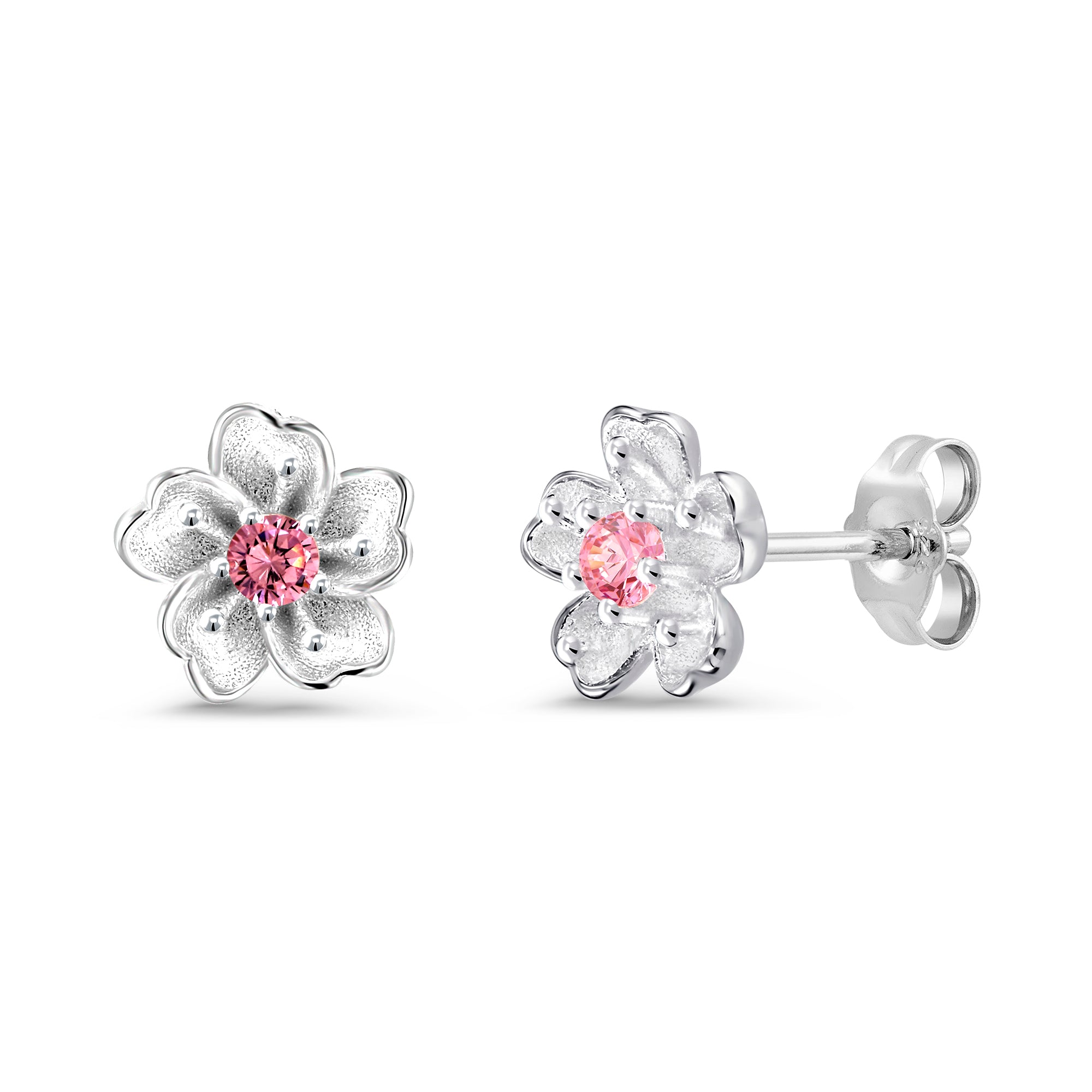 925 Sterling Silver Cherry Blossoms Stud Earrings, Blossoms Earrings, Pink Cz Flower Stud Earrings, Blossoms Flower Charm Earrings, Hypoallergenic Flower Studs, Floral Jewelry
