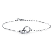 925 Sterling Silver Interlocking Bracelet, Dainty Bracelet, Interlocking Circle CZ Bracelet, Karma Bracelet, Hoop Bracelet, Silver Jewelry