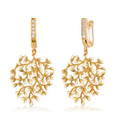 14k Gold Plated Tree of Life Dangle Earrings for Women, 925 Sterling Silver Leaf Drop Huggie Hoops with CZ, Hypoallergenic Botanical Jewelry Gift