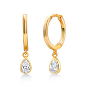 925 Sterling Silver Teardrop Huggies Earrings, Cz Huggies Earrings, Teardrop Cz Dangle Huggies, 14k Gold Plated Teardrop Huggies, Hypoallergenic Huggies