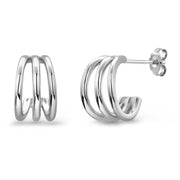 14k Gold Plated & 925 Sterling Silver Triple Hoop Earrings for Women, Small Chunky Cuff Studs, Hypoallergenic Minimalist Layered Look Jewelry for Everyday Wear