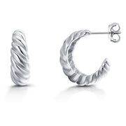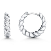 925 Sterling Silver Twisted Round Huggie Earrings, Elegant Lightweight Jewelry, Hypoallergenic Silver, Stylish Everyday Wear, Gift for Her