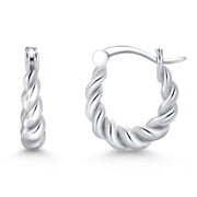 925 Sterling Silver Twisted Oval Huggies Earrings, Lightweight Silver Hoops, Hypoallergenic Silver Hoop Earrings, Hoop Gift for Women