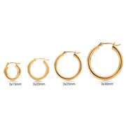 Solid 14K Yellow Gold Shiny Tube Hoop Earrings, Tube Hoop Earrings, Thick Hoop Earrings, Bold Hoop Earrings, Hinged Clasp Hoop Earrings, 15mm, 20mm, 25mm, 30mm Gold Hoop Earrings
