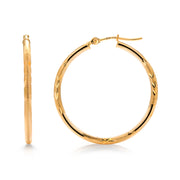 14K Solid Yellow Gold 30mm Twisted Hoop Earrings, Circle Twisted Hoop Earrings, Gold Twisted Hoop Earrings, Hinged Clasp Hoop Earrings, Gold Hoop Earrings