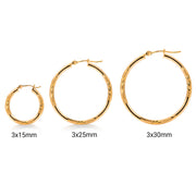 14K Yellow Gold 30mm, 25mm, and 15mm Textured Tube Hoop Earrings, Circle Hoop, Round Hoop Earrings, Textured Gold Hoop Earrings, Hinged Clasp Hoop Earrings