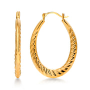 14K Solid Yellow Gold Twisted Oval Hoop Earrings, Graduated Twisted Hoop Earrings, Textured Oval Hoop Earrings, Hinged Clasp Hoop Earrings, Gold Oval Hoop Earrings, Twisted Oval Hoop Earrings
