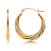 14K Solid Yellow Gold Twisted Hoop Earrings, Graduated Twisted Hoop Earrings, Textured Hoop Earrings, Hinged Clasp Hoop Earrings, Gold Hoops