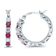 925 Sterling SIlver Half Eternity Huggie Hoop Earrings, Simulated Ruby Cz Hoop Earrings, Simulated Sapphire Cz Hoop Earrings, Round Hoop Earrings