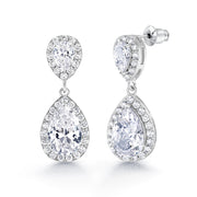 Double Teardrop CZ Dangle Earrings, Teardrop Cz Earrings, Halo Drop Earrings, Pear Shape Halo Earring, Wedding Earrings