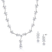 Teardrop CZ Flower Design Necklace Set- 17 Inch Length, Multi Shape Cz Necklace Set, Wedding Necklace Set, Brass Necklace Set