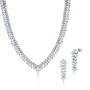 Fern Design Marquise AAA Cubic Zirconia Rhodium Plated Vintage Earrings Necklace Wedding Set- 16 Inch Length