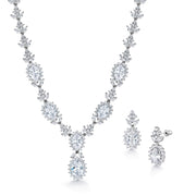 Teardrop and Marquise AAA Cubic Zirconia Chandelier Design Rhodium Plated Halo Earrings Necklace Wedding Set- 16 Inch Length