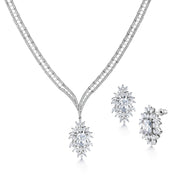 Pear Cut AAA Cubic Zirconia Necklace Set- 18 Inch Length, Flower Design Necklace Set, Wedding Necklace Set
