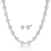 AAA Cubic Zirconia Flower Design Earrings Necklace Wedding Set- 17 Inch Length, Flower Design Earrings Necklace Set