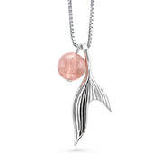 925 Sterling Silver Fish Tail Rose Simulated Quartz Ball Pendant, Silver Fish Tail Simulated Red Quartz Crystal Ball Necklace, Fish Tail Pendant, Hypoallergenic Pendant