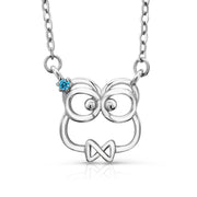 925 Sterling Silver Owl -16''+2'' Chain Necklace, Owl CZ Necklace, Owl Necklace, Owl Charm Necklace, Blue Cz Necklace, Cable Chain Necklace, Hypoallergenic Necklace