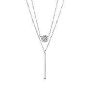 925 Solid Sterling Silver Bar And Round Cz Statement Necklace, 2 Layered Silver Necklace, Vertical Bar Necklace, Silver Cable Chain Necklace, Hypoallergenic Necklace