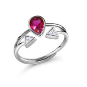 925 Sterling Silver Created Ruby CZ Adjustable Ring, Geometric Ring, CZ Ring, Created Ruby CZ Ring, Everyday Ring, Silver Cz Ring
