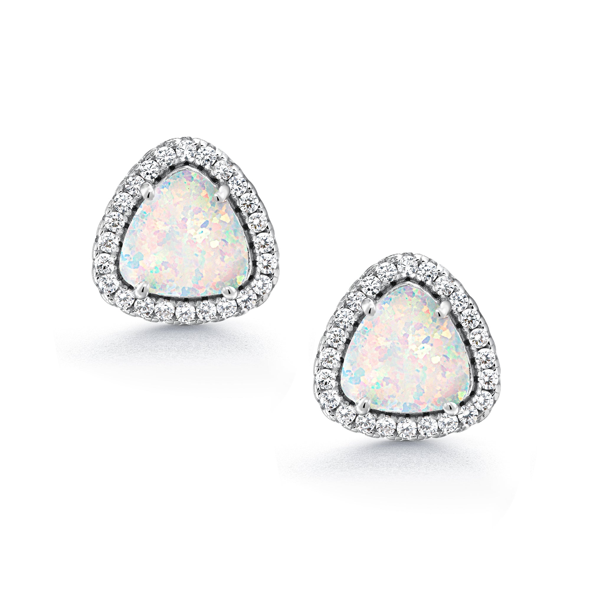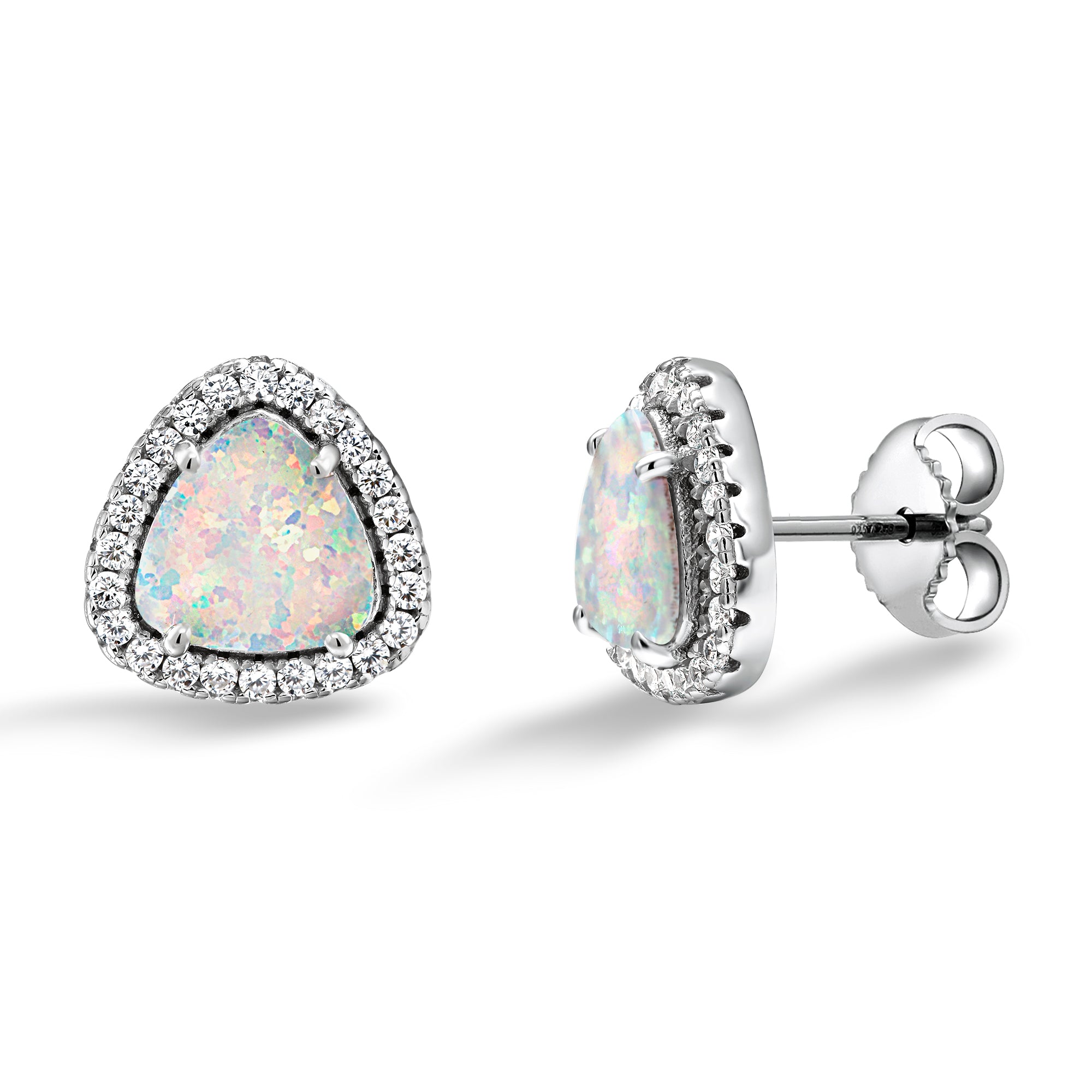 925 Sterling Silver Trianlge Opal Halo Earrings, Opal Halo Stud Earrings, Silver Opal Triangle Earrings, Simulated White Opal Stud Earrings, Hypoallergenic Studs