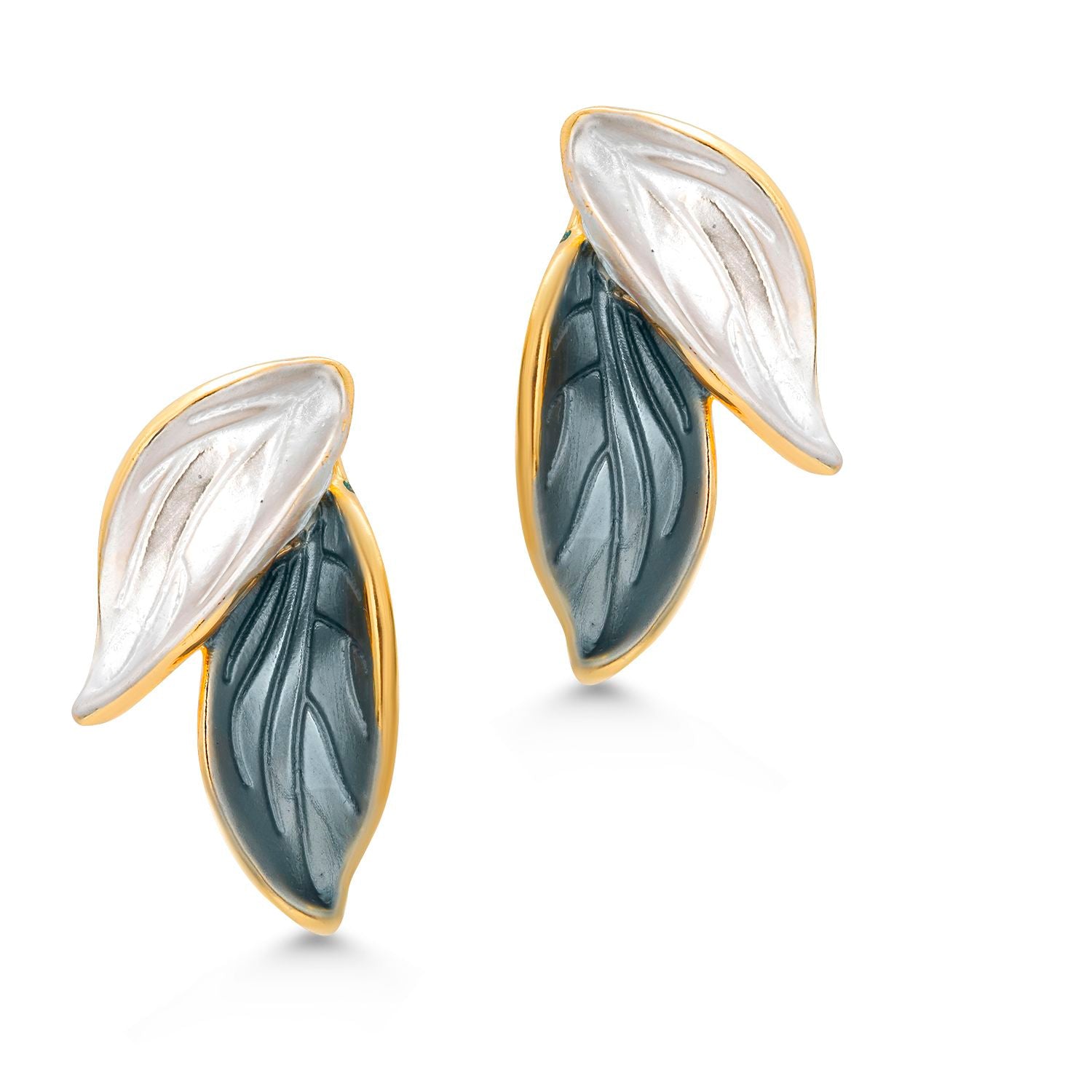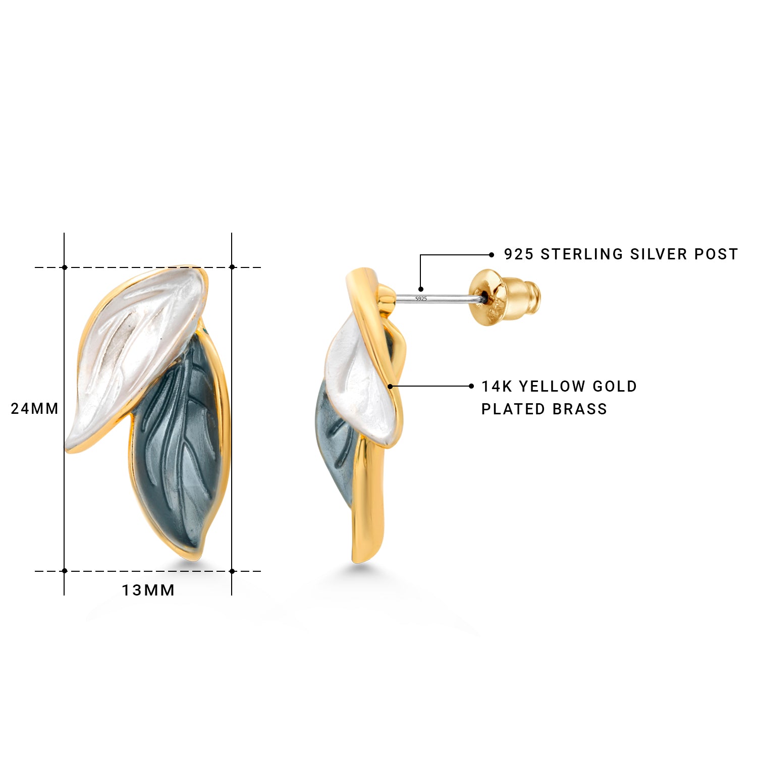 Enamel Leaf 14k Gold Plated Stud Earrings, Leaf Stud Earrings, Nature Leaf Stud Earrings, Gold Plated Leaf Stud Earrings, Leaf Stud Earrings