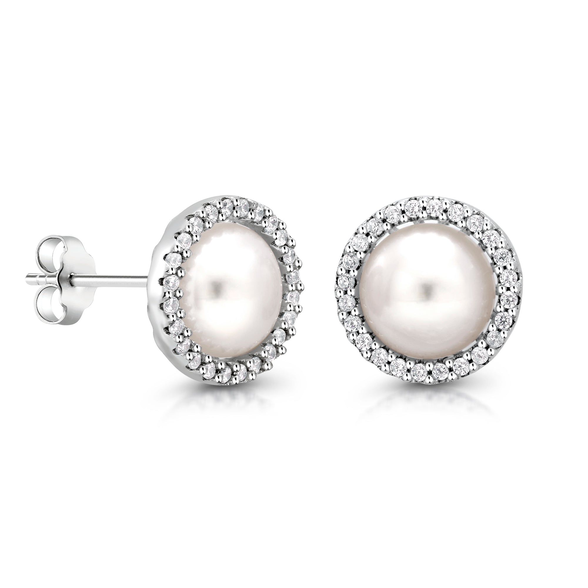 925 Sterling Silver Freshwater Pearl And Cz Studs, Halo Pearl Studs, Pearl Studs, Hypoallergenic Pearl Stud Earrings, June Birthstone Studs