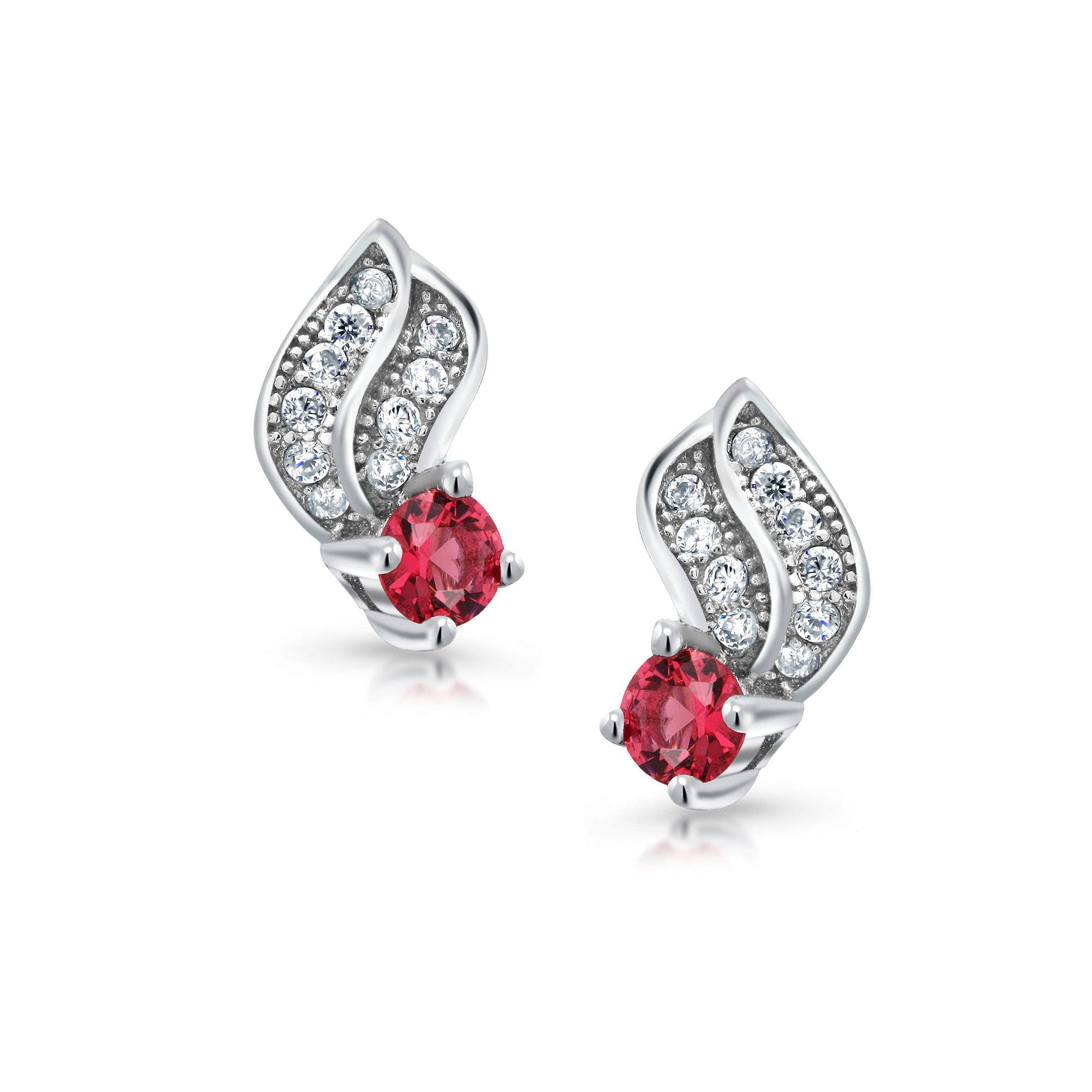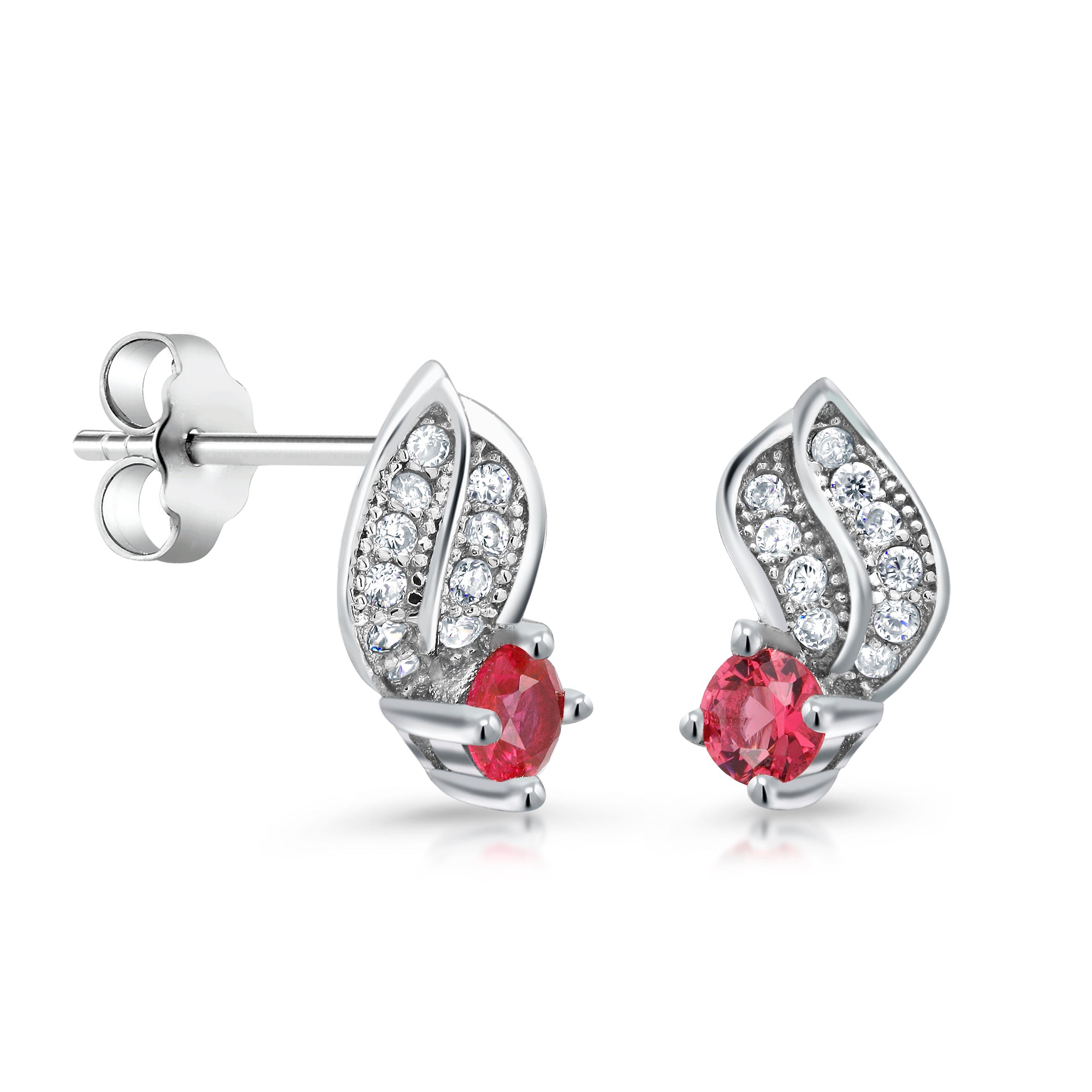 925 Sterling Silver Cubic Zirconia Leaf Design Earrings, Silver Studs Earrings, Red CZ Pave Studs, Pave Studs for Gift, Hypoallergenic Stud Earrings