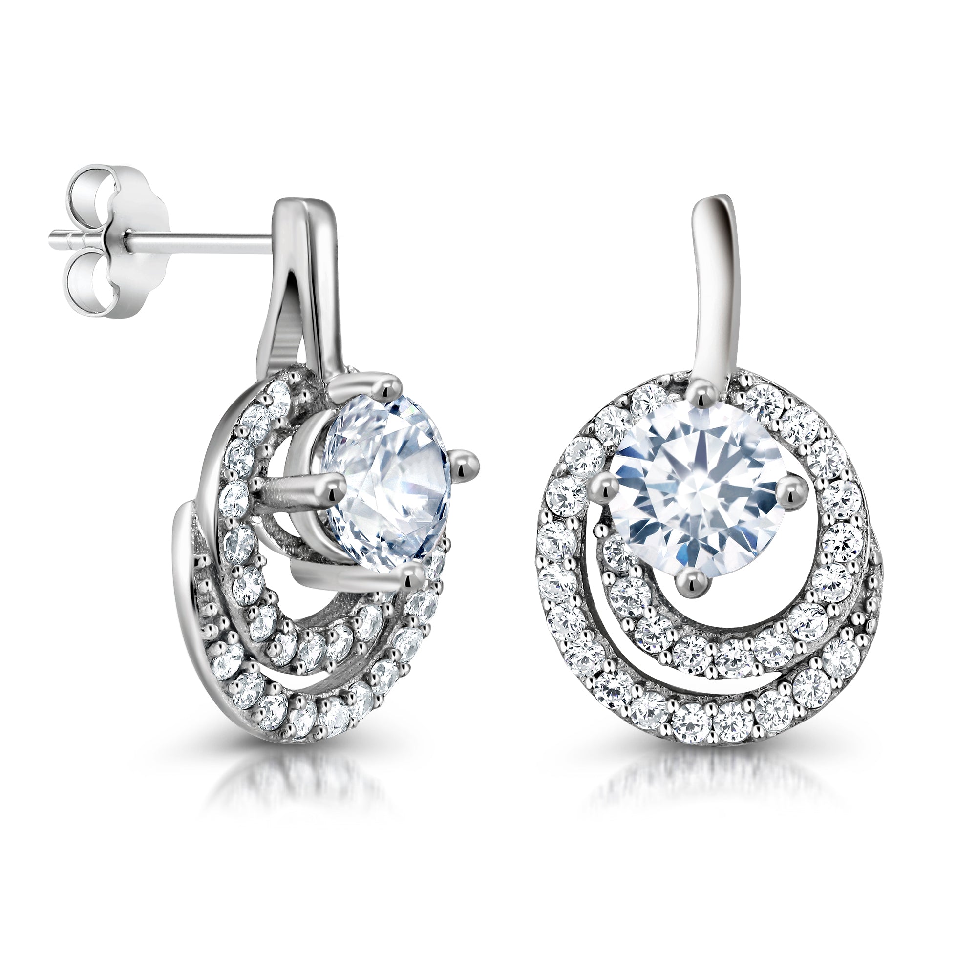 925 Sterling Silver Earrings, CZ Studs for Women, Solitaire Swirl Stud Earrings, Sparkly Hypoallergenic Stud Earrings