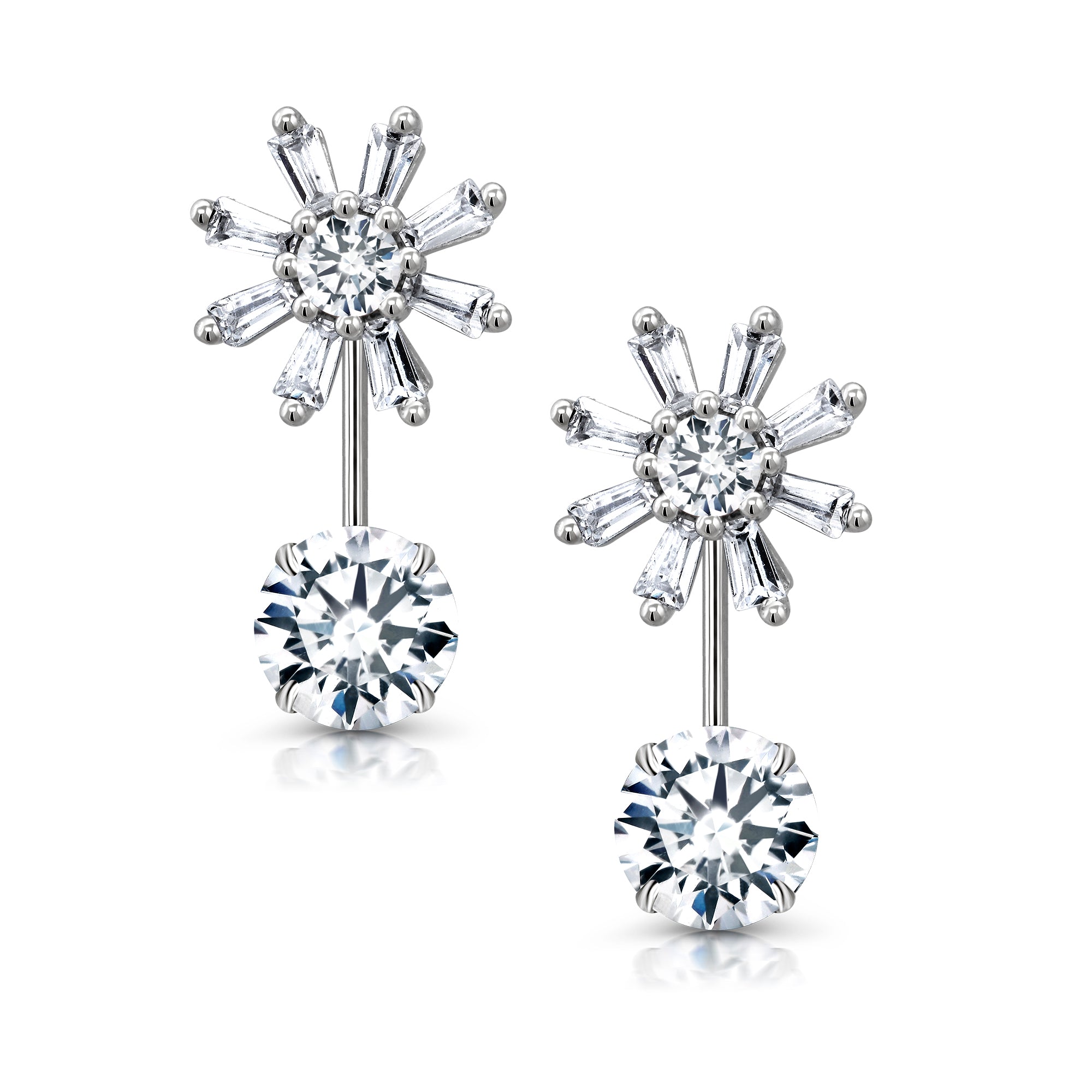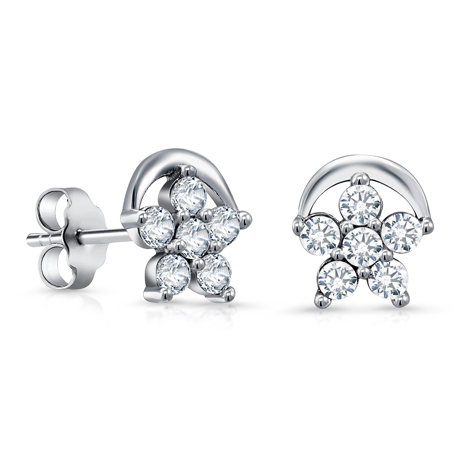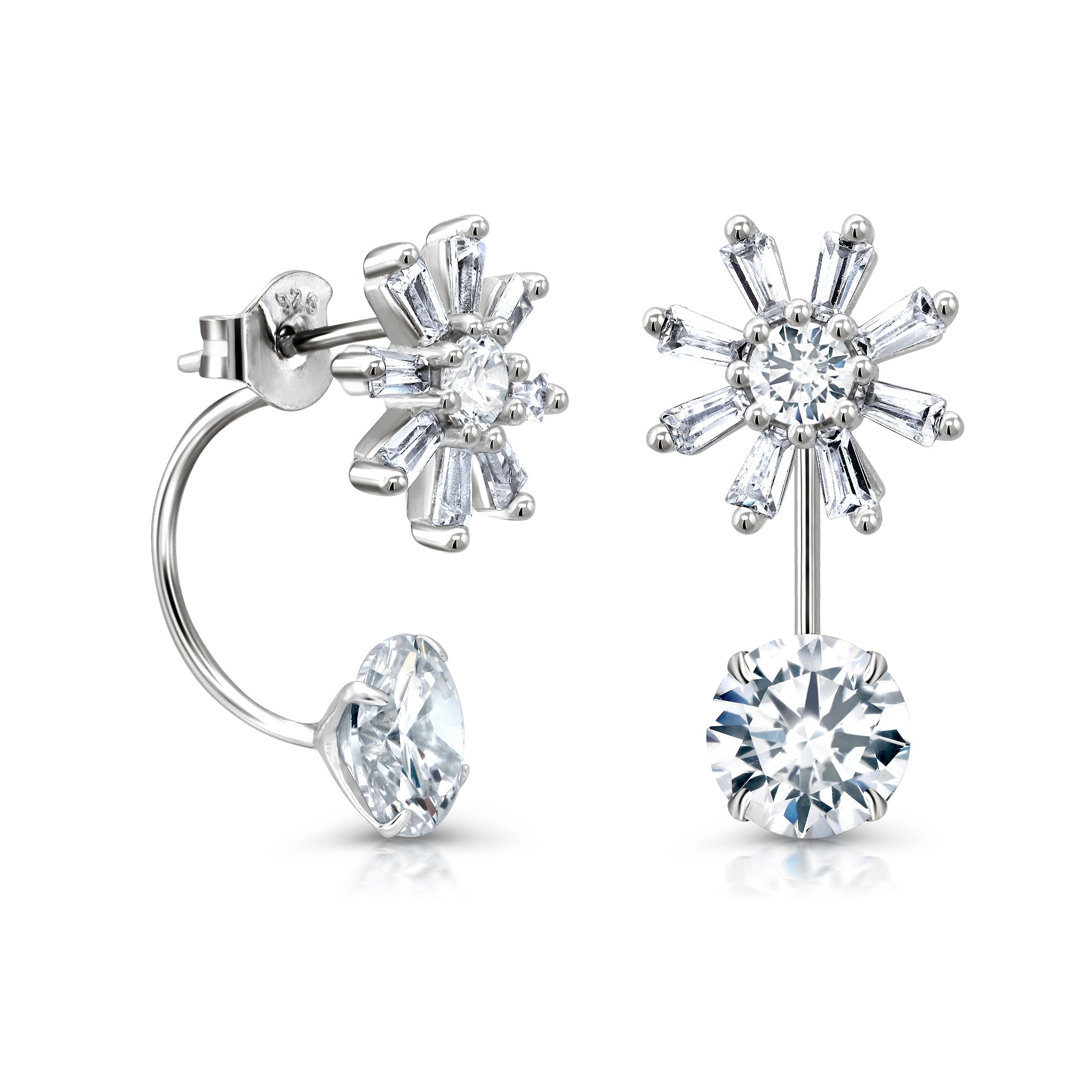925 Sterling Silver Cubic Zirconia 2 in 1 Flower Design Stud Earrings, Double sided Studs Earrings, Hypoallergenic Flower Stud Earrings