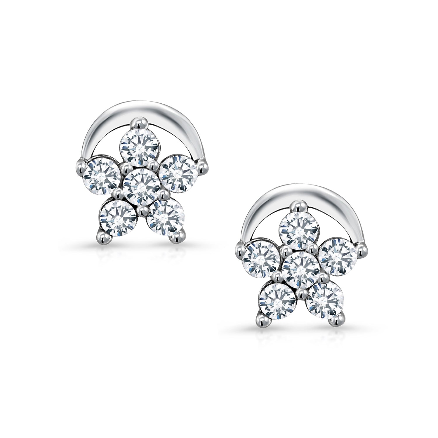 925 Sterling Silver Half Moon & Star Stud Earrings, CZ Studs, Silver Hypoallergenic Jewelry, Half Circle Moon and Star Studs, Silver CZ Studs