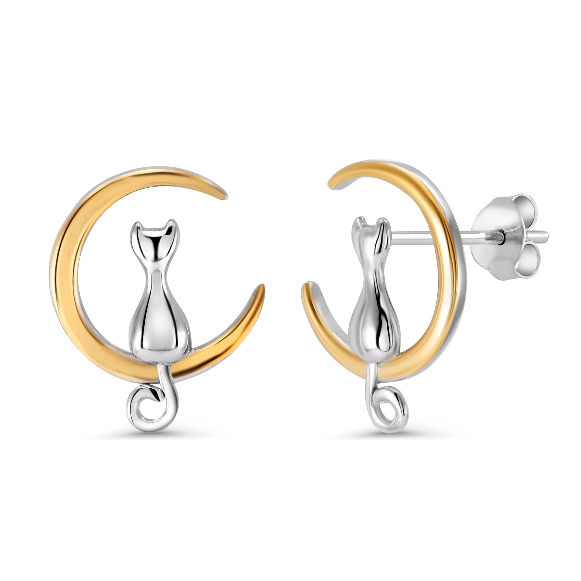 925 Sterling Silver Cat And Moon Stud Earrings, Cat on moon Stud Earrings, Gift for cat lovers, Earrings for Gift, Cat moon jewelry, Pet jewlery